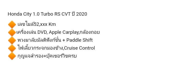 Honda City 1.0 Turbo RS เกียร์ออโต้ ปี 2020